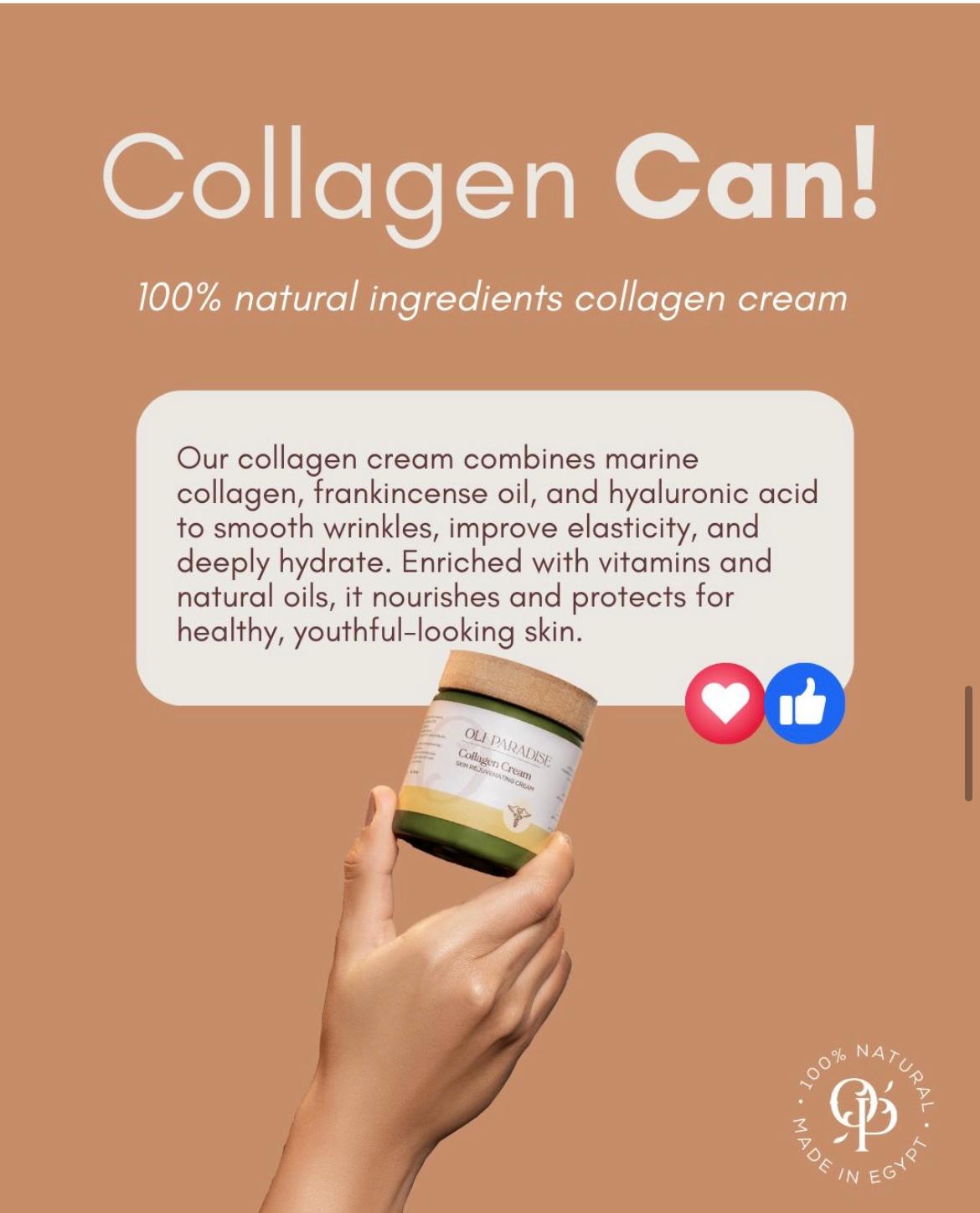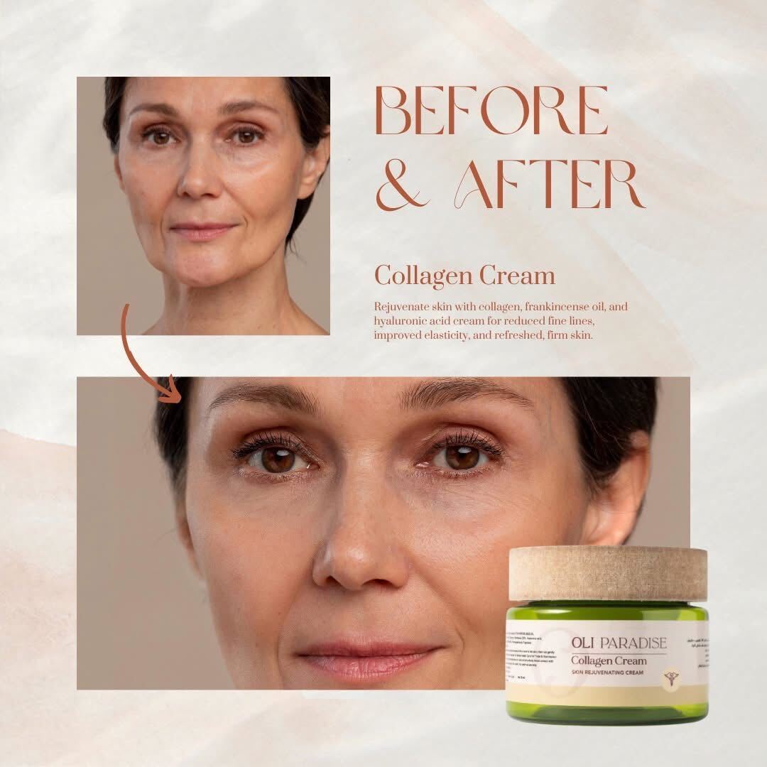 ودّعي التجاعيد والبهتان واستقبلي بشرة مشدودة، ناعمة، ونضرة مع أولي باراديس كولاجين! تركيبة ثورية غنية بالكولاجين البحري (100% طبيعي وآمن) وزيت اللبان الدكر وحمض الهيالورونيك وأهم الزيوت الطبيعية، هتمنح بشرتك glow طبيعي وترطيب فائق من أول أسبوع  . العبوة شيك وتصميمها Premium يليق بجمالك، والفورمولا non-greasy وسريعة الامتصاص علشان تستخدميها صباحًا ومساءً بدون أي إحساس دهني. مناسب لكل أنواع البشرة، وعُنصر الجمال اللي هيرجع لبشرتك شباب