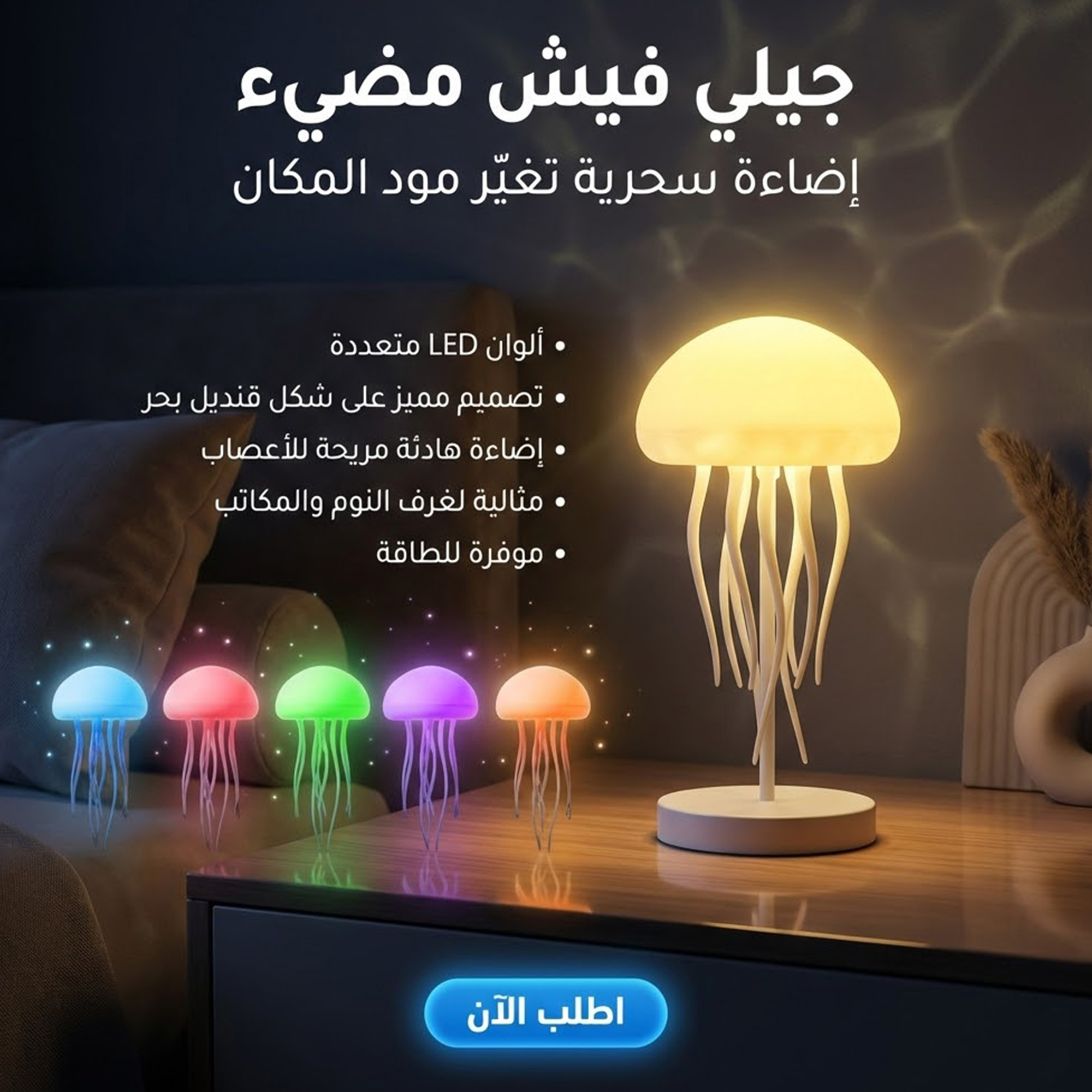 & Free Shipping– “🪼 أباجورة جيلي فيش على شكل قنديل مضيء – نور هادي وأجواء بحرية ساحرة لغرفتك! 🌊✨ ديكور عملي وجميل! 💡🏠”
