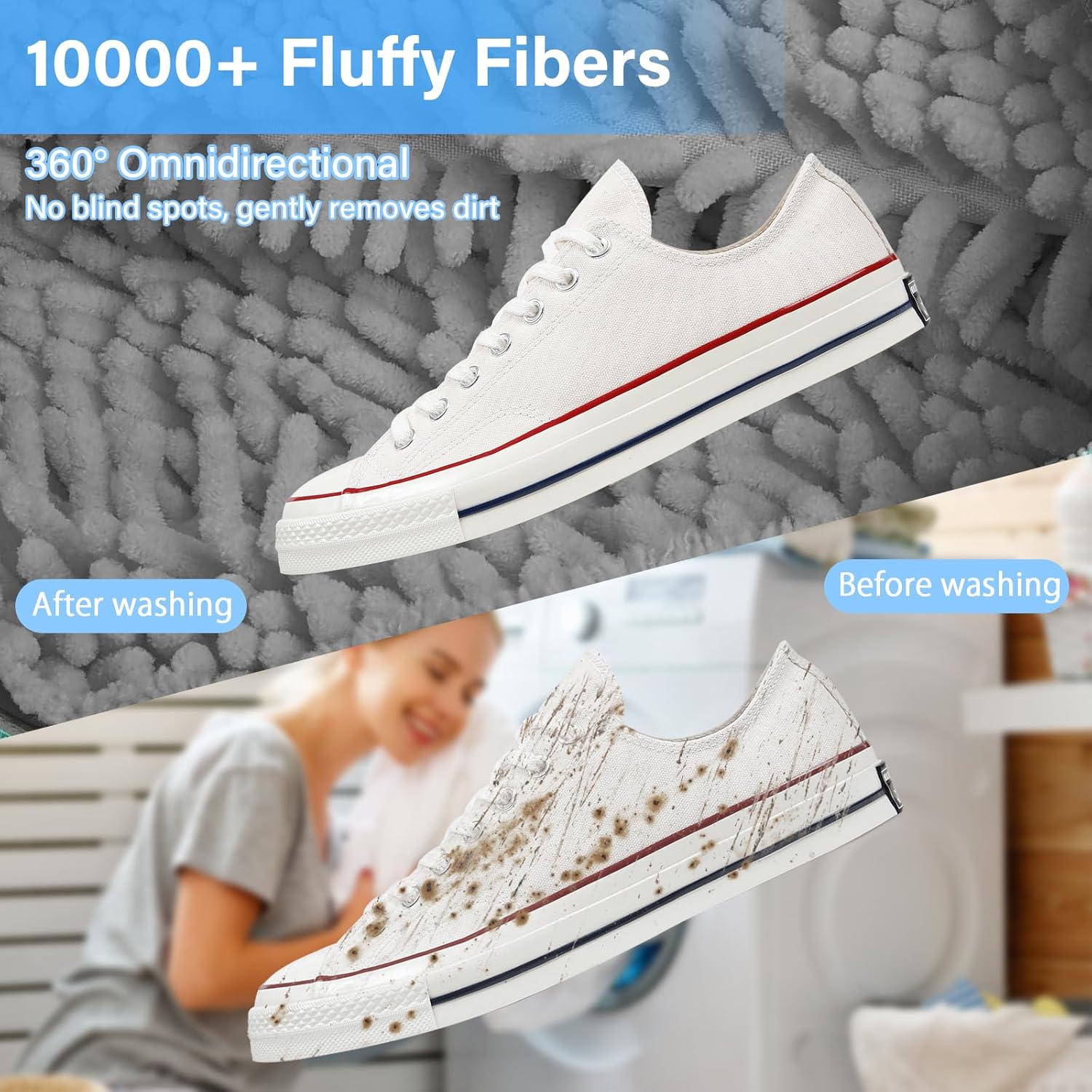 تخيل تغسل جزمتك من غير ما توسّخ إيدك، ولا تقلق إنها تتخرب في الغسالة. أول ما تحطها في الحقيبة وتسمع صوت الغسالة شغالة، تبقى مطمن إن الحذاء بيتنظف تمام من غير ما يتخدش أو يتبهدل. والنتيجة؟ جزمة نضيفة، ريحتها حلوة، وشكلها جديد من تاني.