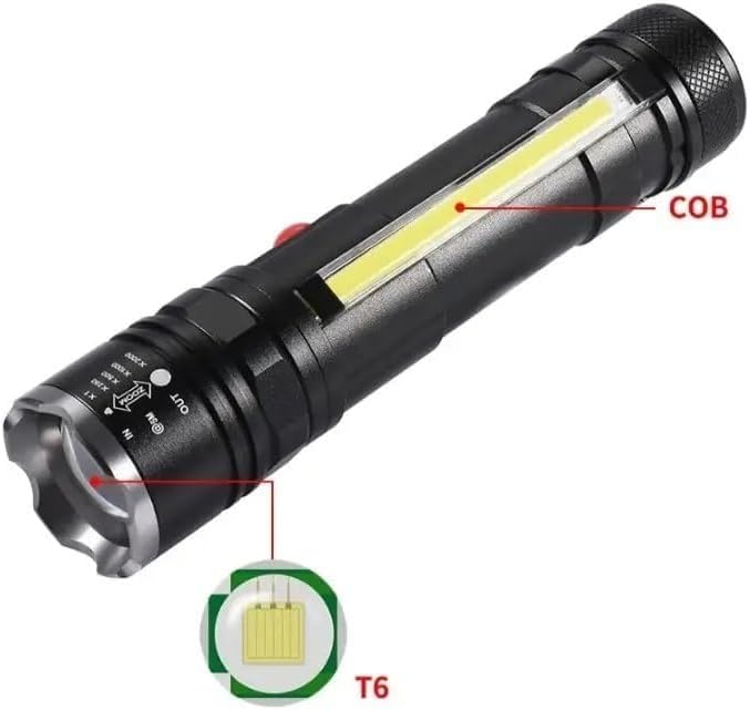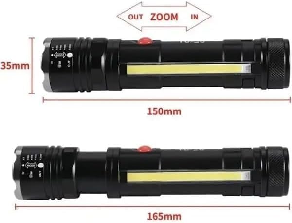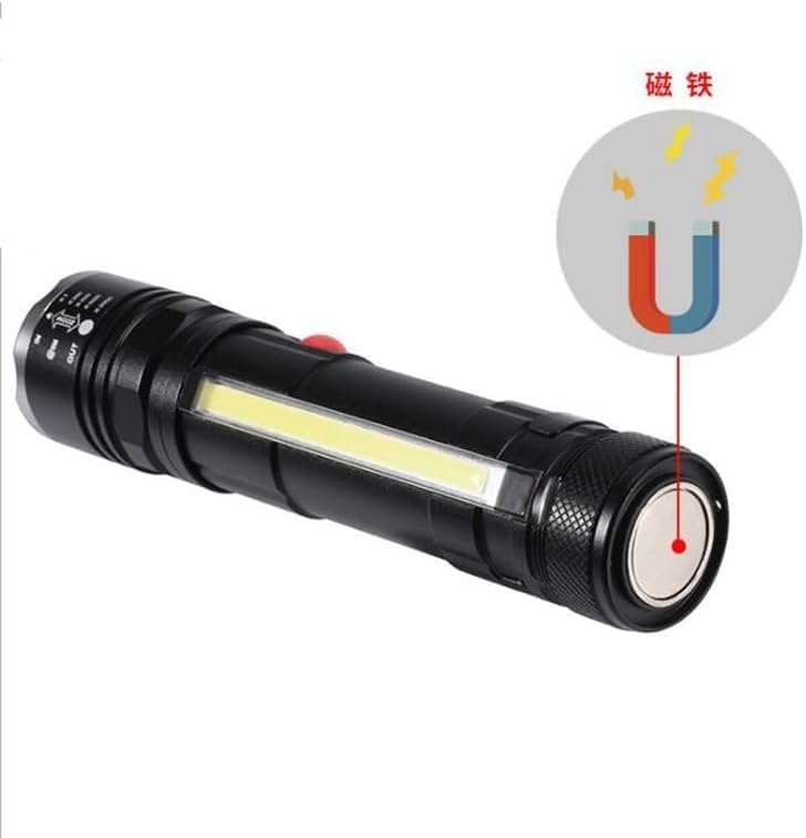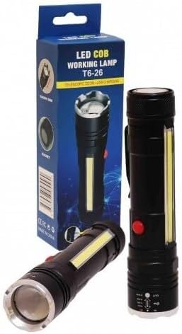 الكشاف فيه لمبة COB جانبية بتنور مساحة واسعة، ممتازة للشغل، التخييم، الصيانة، أو أي استخدام محتاج إضاءة ثابتة وعريضة.